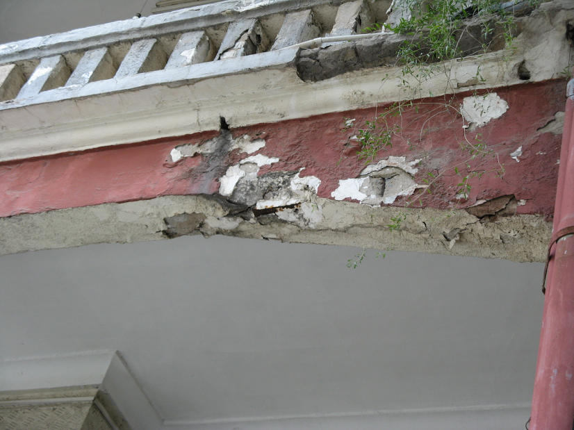 濟(jì)南市郵政局北二樓,建于1919年,兩層磚混結(jié)構(gòu),由于該建筑物使用年限接近100年,結(jié)構(gòu)構(gòu)件和非結(jié)構(gòu)構(gòu)件均有不同程度的損壞。按甲方要求,僅對(duì)結(jié)構(gòu)的安全性及抗震性能進(jìn)行復(fù)核,并對(duì)相關(guān)構(gòu)件進(jìn)行承載力復(fù)核和加固設(shè)計(jì),屬保護(hù)性修繕設(shè)計(jì)范圍。