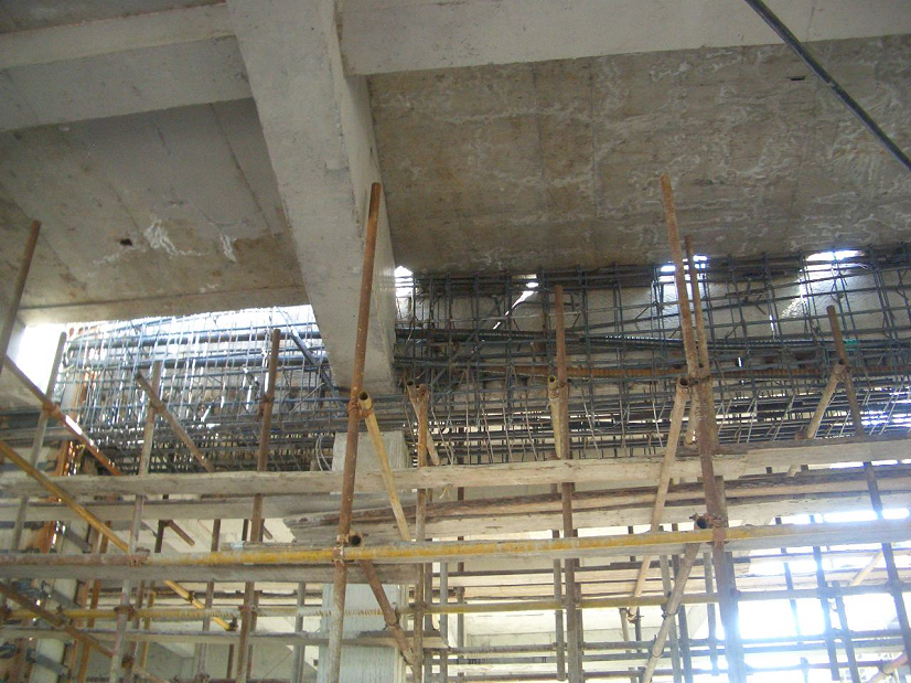 青島奧帆賽場31號東西地塊商業(yè)中心,地下二層,地上三層(局部四層),框架結構,由于商業(yè)布局改變,拆除1~2層共六棵框架柱,拆除后框架梁跨度18米。采用有粘結預應力加固原有框架梁,我單位設計施工。