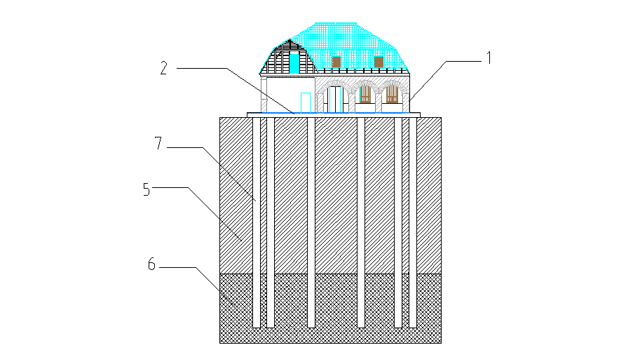 濟南皮膚病醫(yī)院位于濟南市中山公園東老商埠一期地塊內,歷時百年,為仿德式歷史風貌建筑。該建筑物為單層帶局部地下室的砌體結構,建筑面積約165.08平方米,其南立面見圖8。山東融匯建設開發(fā)有限公司在對該地塊開發(fā)的同時,本著保護文物傳承文化的目的,擬對該建筑原址保護,并在其下方增設三層地下停車場。