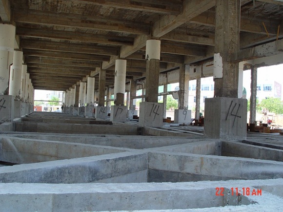 2005年7月旋轉(zhuǎn)施工完成,施工過程中基礎(chǔ)及上部結(jié)構(gòu)未受損傷。