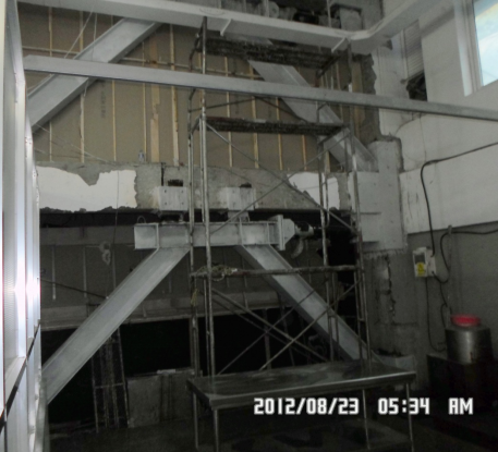 威海三進船廠綜合辦公樓豎向承載力不足,水平抗震性能較差,采用了同時增設(shè)鋼柱與消能減震支撐聯(lián)合加固的方法,消能減震支撐由鋼支撐、粘滯阻尼器和橡膠支座組成。增加的鋼柱解決了豎向承載力不足的問題,消能減震支撐有效減小了結(jié)構(gòu)的扭轉(zhuǎn)效應(yīng),并使得結(jié)構(gòu)地震作用下水平變形減小且趨于均勻。