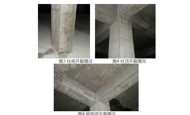 2013年年中工程主體結(jié)構(gòu)施工完成,基礎(chǔ)后澆帶澆筑完成,連續(xù)降雨過程后,地下車庫部分產(chǎn)生整體上浮現(xiàn)象,防水底板隆起,框架柱出現(xiàn)了開裂、壓碎現(xiàn)象,部分梁、板也出現(xiàn)裂縫。